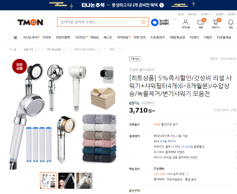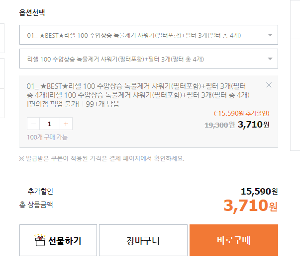 가격도 좋고 녹물제거 샤워기(필터포함)에 필터 3개가 더오니 3박 4일 일정을 준비한 저에게 딱이더라고요! 가격도 3,710원이면 정말 가성비 좋습니다. 그런데 제가 가는 베이 캐피털 다낭 호텔에 맞을지는 아직 모르겠습니다. 웬만하면 무난하게 다 맞는다고 하니 도전해 보겠습니다.