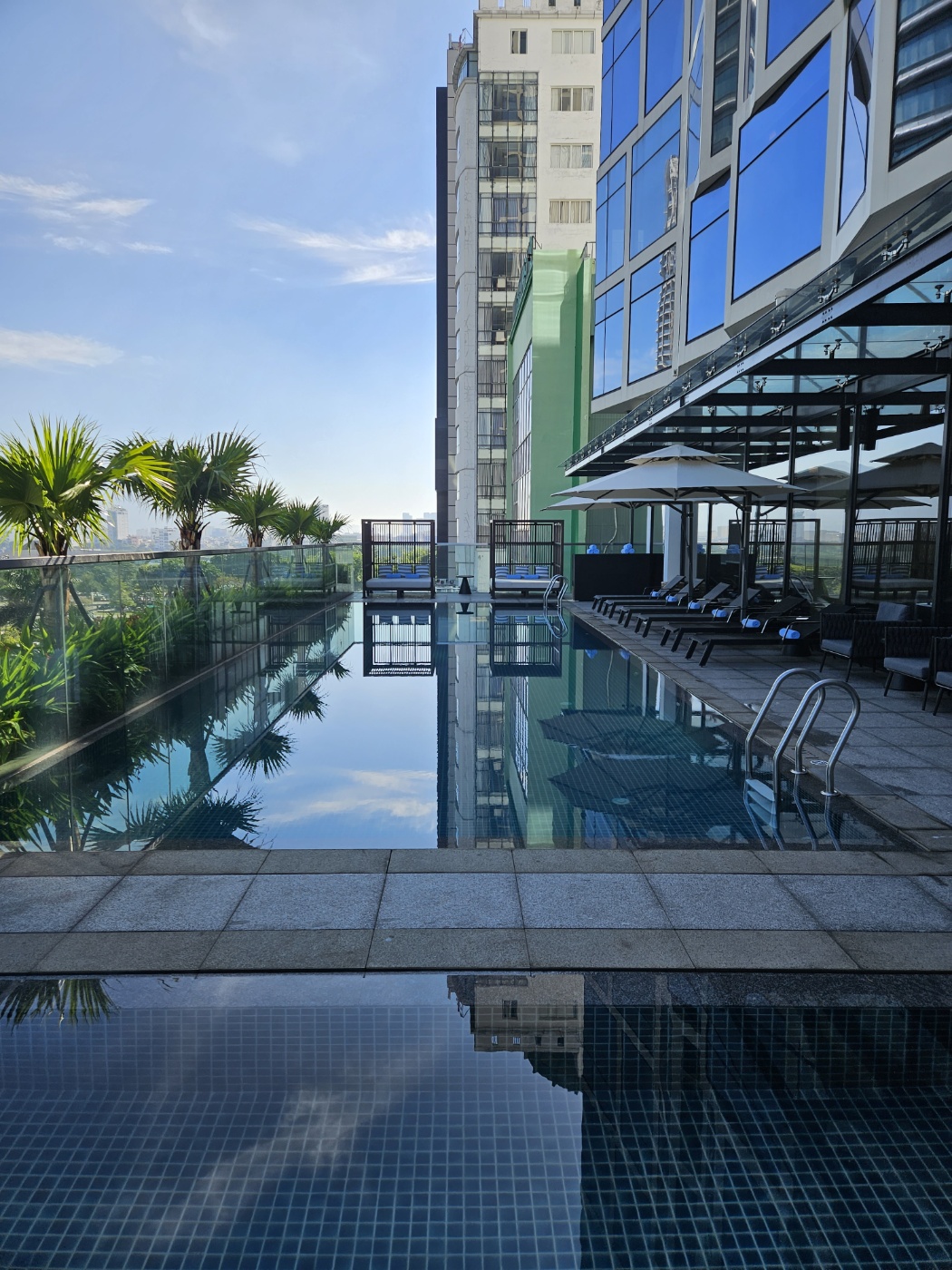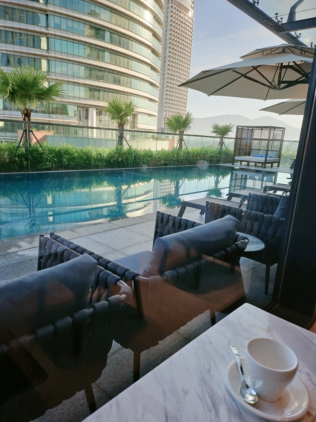 4층에 조식 먹는 식당이 있는데 바로 옆에 수영장이 보입니다.