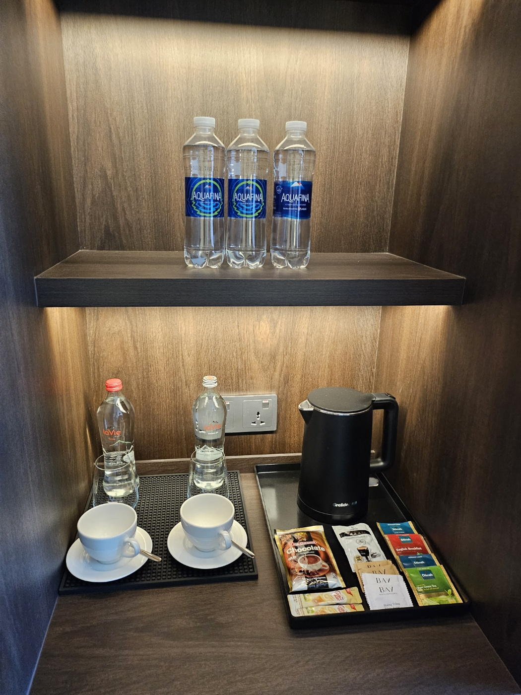 봉지로 포장된 과자도 있었고, 초콜릿, 생수 2병 기타 냉장고에 든 음료들 전부 무료로 이용하였습니다.