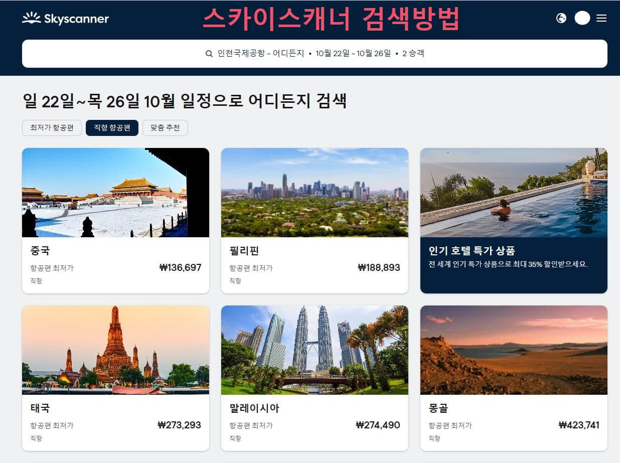 스카이스캐너로 해외여행 준비하기(항공권 검색)