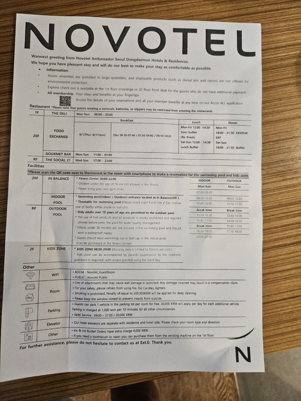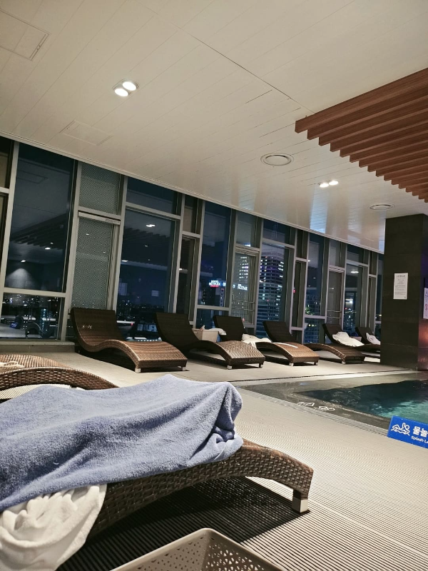 노보텔 엠베서더 동대문에는 여유롭고 편안한 휴식을 즐길 수 있는 실내수영장과 실외수영장(루프탑), 피트니스 센터가 있습니다. 저흰 아이가 있어서 실외수영장(아이들은 못들어가니 참고하심 좋을 듯 합니다!)은 이용하지 못했고, 실내수영장을 이용하였습니다. 수영장은 객실에 체크인 하자마자 벽면에 부착되어있는 QR코드를 통해 예약할 수 있는데 선착순 90인이니 입실하자마자 예약하는 게 좋아요.(입실 전날 문자옴) 시간대 별로 예약을 받더라구요. 하루에 1번 이용 가능하다고 하여 입실해있는 동안 2번을 이용할 수 있더라구요. 저희는 저녁 8시,다음날에는 오전 7시 예약했는데 오전 7시꺼는 늦잠 자는 바람에 가질 못했어요! 다음에 가면 꼭 2번 이용해야겠어요! 저녁식사 후에 수영장을 방문했는데 물이 좀 차가워서 오래는 못하고 옆에 따듯한 사우나가 있어서 몸을 담그고 있다가 드뤄누워 쉬다왔습니다. 피트니스 센터는 가보지 않아 사진이 없네요! 오랫만에 딸래미와 힐링하며 여유로운 시간을 보낼 수 있었어요:)