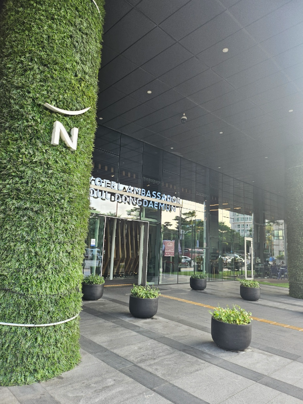 노보텔 엠베서더 동대문은 서울 동대문 지역에 위치하고 있어, 주요 관광지와 교통이 편리합니다. 호텔은 동대문 디자인 플라자 (DDP)와 가까운 거리에 있어 쇼핑과 문화를 즐길 수 있는 좋은 위치에 자리하고 있어요. 저희는 호텔 방문 전에 미리 DDP를 방문했다가 입실 시간에 맞춰서 DDP에서의 일정을 다 마치고 호텔로 이동하였습니다! 호텔 입실하기 전에 딱 들리기 좋은 곳 입니다! 또한, 호텔 주변에는 다양한 음식점, 카페, 현대아울렛 등이 있어 편리한 쇼핑과 식사를 즐길 수 있어요. 다만, 호텔 바로 앞이 아니라 조금 걸어나가셔야 되요. 많이는 아니지만요! 노보텔 엠베서더 동대문은 지하철과 버스 정류장도 가까워 대중교통을 이용하여 쉽게 이동할 수 있는 장점이 있지만 더운 관계로 자차를 이용합니다!^_^