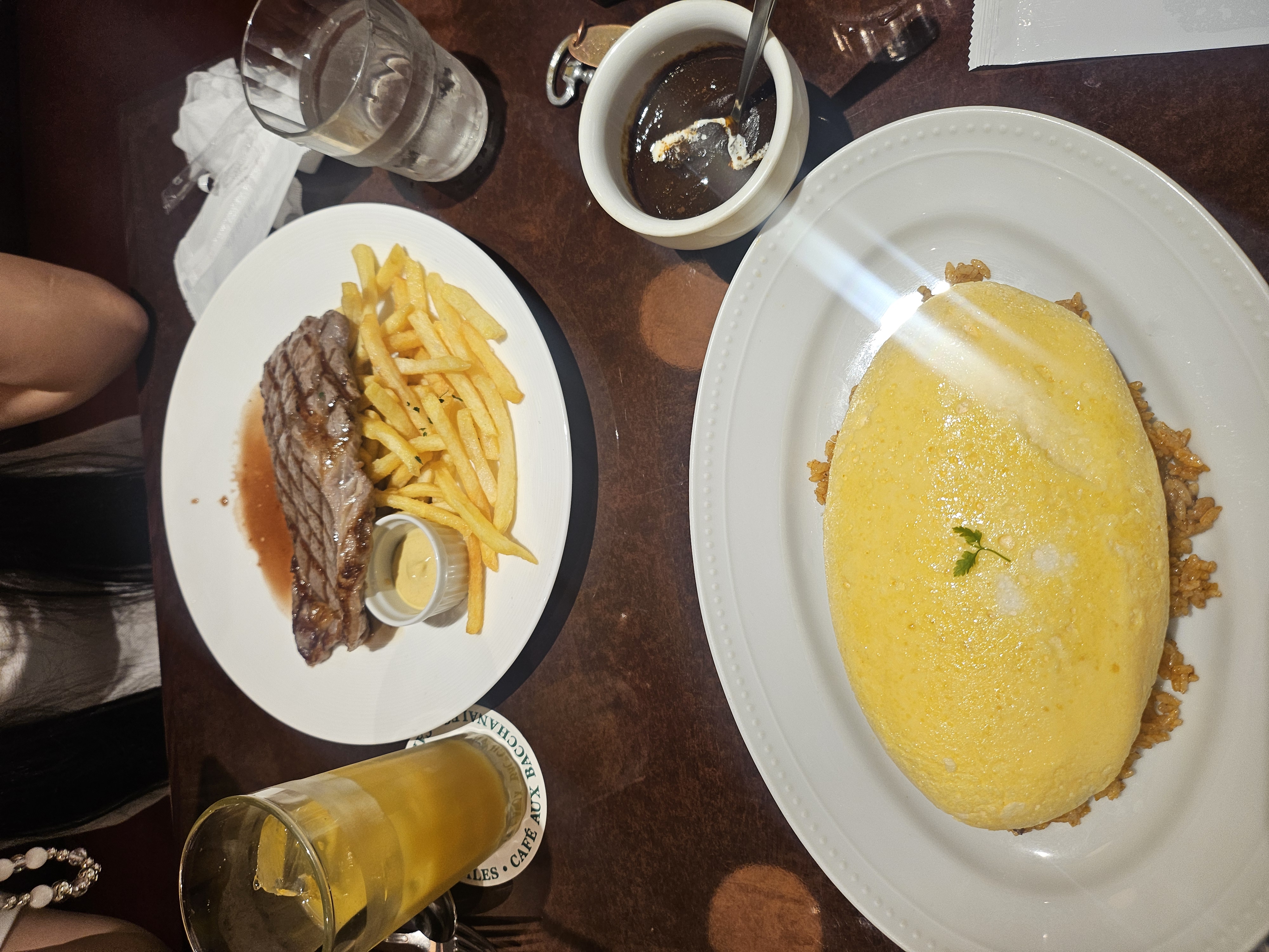 맛집을 찾다가 가게되었습니다. 저는 수프레 오므라이스를 먹고 딸은 스테이크를 먹었습니다. 오무라이스를 입에 넣은 순간 입에 살살 녹아 내리더라구요🍴