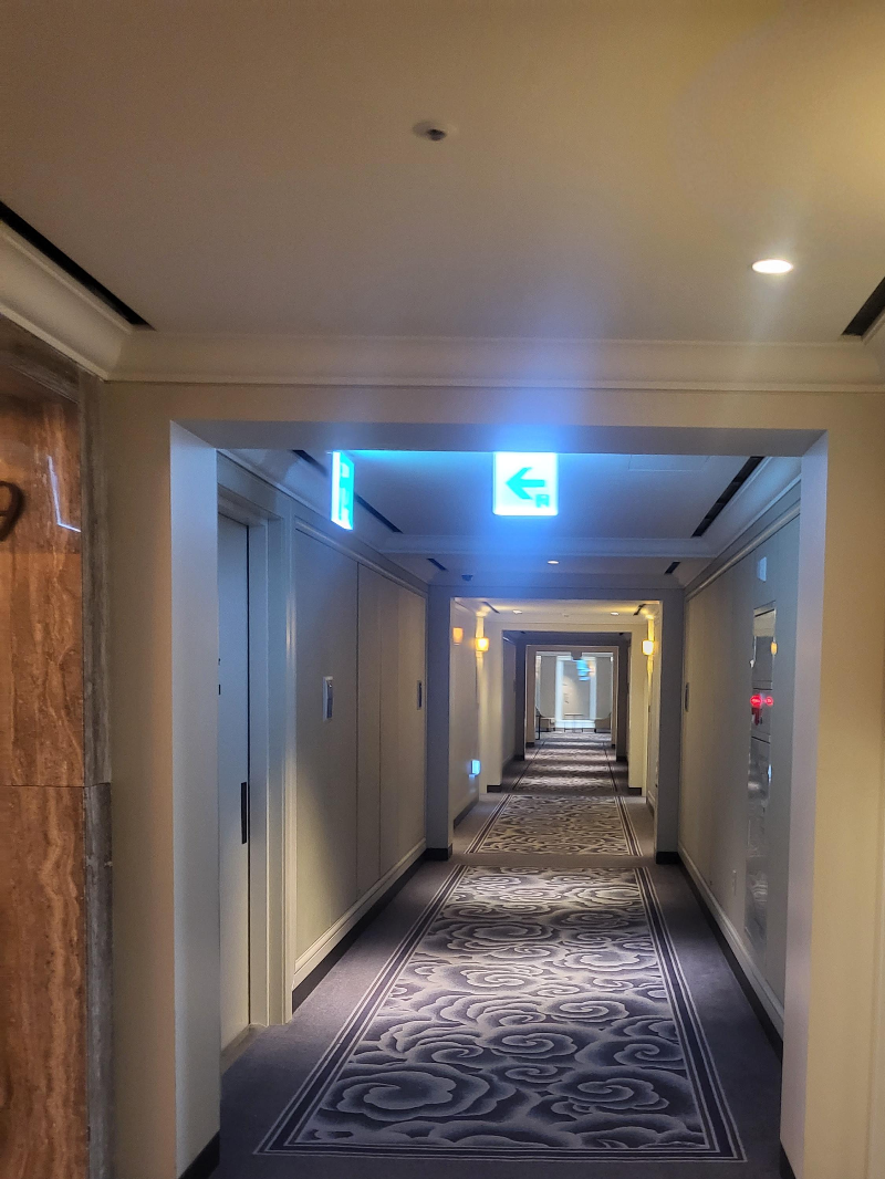 체크인 후 내가 묵은 숙소로 이동! 저희는 9층을 이용하였습니다. 엘베 앞에도 엘베 올 때까지 앉아서 기다릴 수 있게 해 준 호텔의 센스가 보였씁니다. 긴 복도를 따라 들어갑니다.